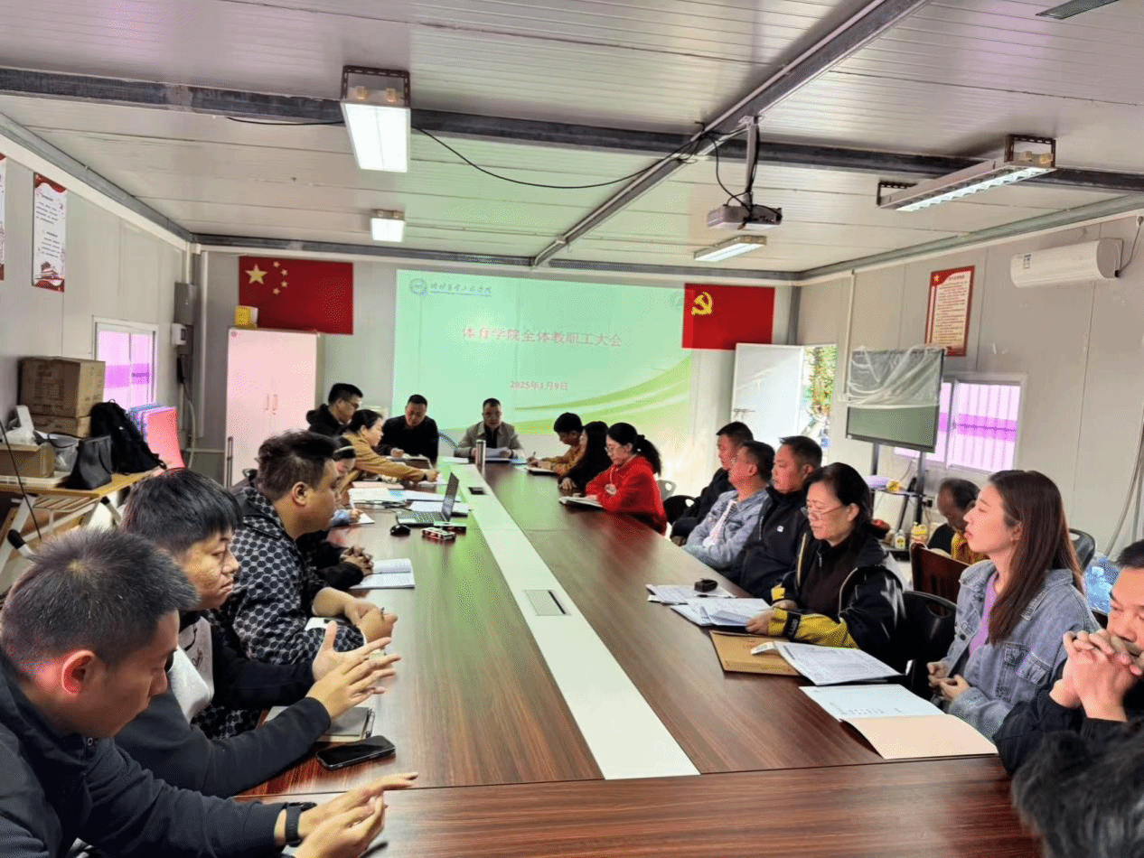 李尚胥副院长(主持工作)传达了学校有关文件精神,并对有关工作进行了部署。他指出,在2024年,在学院全体教职工共同努力下,学院在体育教学、学生体质监测、校内外体育竞赛和阳光体育活动等方面取得了显著成绩。尤其是校外学生体育竞赛,在教练或领队的悉心指导下,在参赛队员的努力拼搏下,共夺得国家级赛事前八名6项,其中季军1项;省级赛事冠军14项,亚军12项,季军10项,一等奖2项;另有阳光赛事全省大专院校一等奖2项,为学校赢得了许多荣誉。体育馆即将投入使用,有了更好的教学、训练条件,相信我们会取得更多好的成绩,为学校赢得更多荣誉。