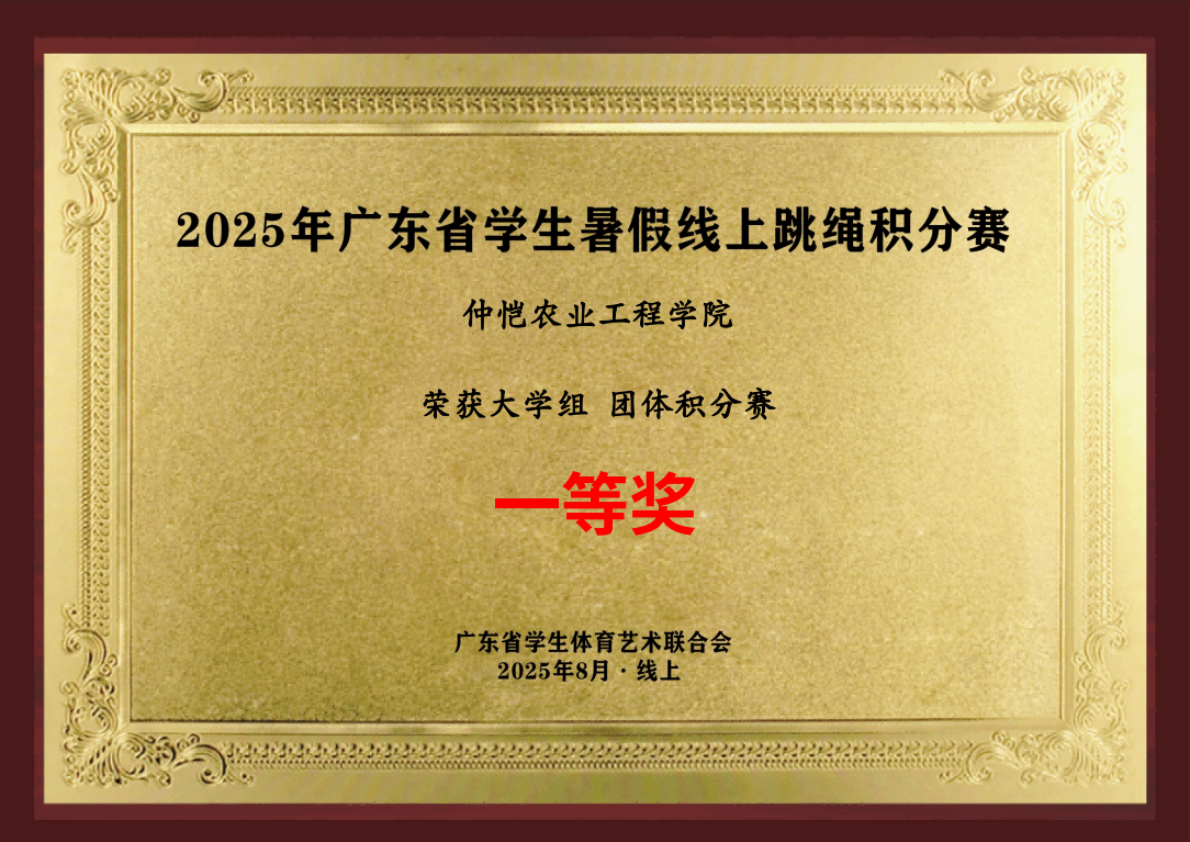 比赛期间,304永利集团每天关注全校学生参与情况和学校排名情况,广泛发动、鼓励动员同学们持续参与活动。经过21天的激烈角逐,最终我校荣获2025年广东省学生暑假线上跳绳大学组团体积分赛一等奖。