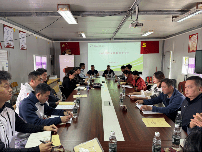 会上,钟进聪、林锋副院长和各负责人分别介绍了新学期的教学管理、运动训练、场地设施、学生体质监测等工作的准备和落实情况,并对有关工作进行了部署和安排。